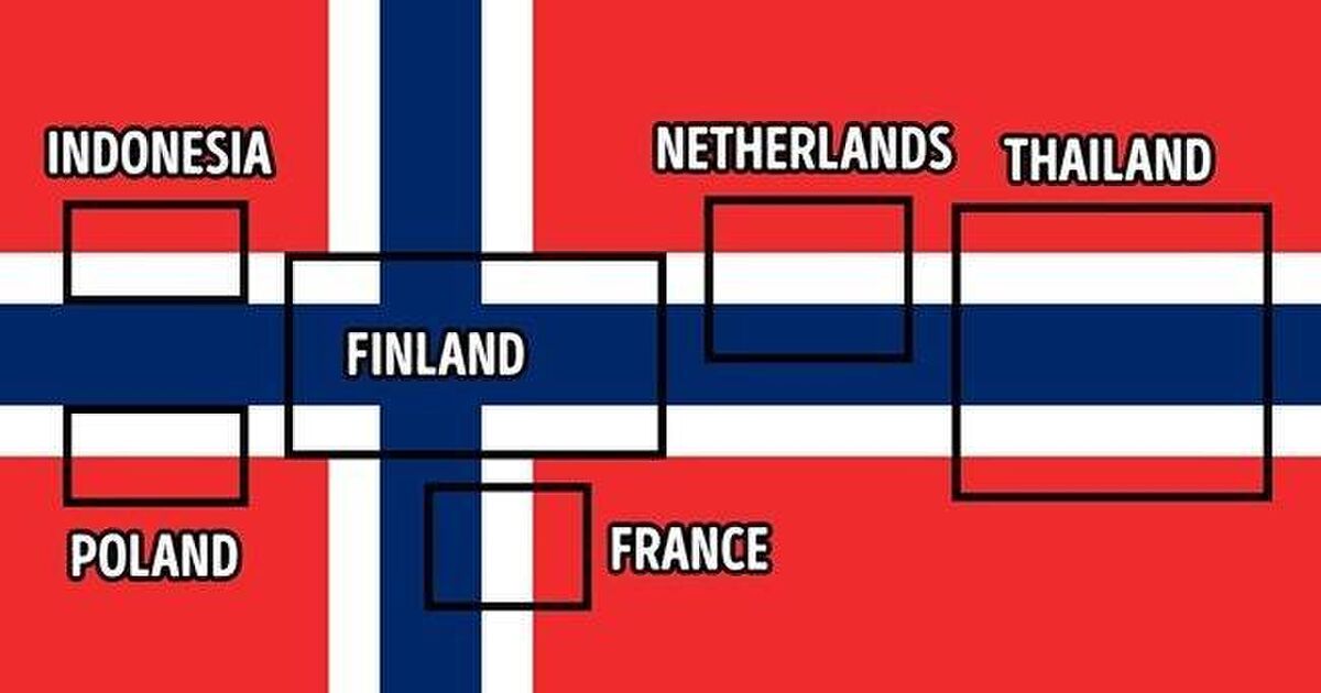 ノルウェーの国旗の一部を四角でトリミングすると他の国の国旗が現れるらしい あの国がない 面白い と盛り上がるtl Togetter